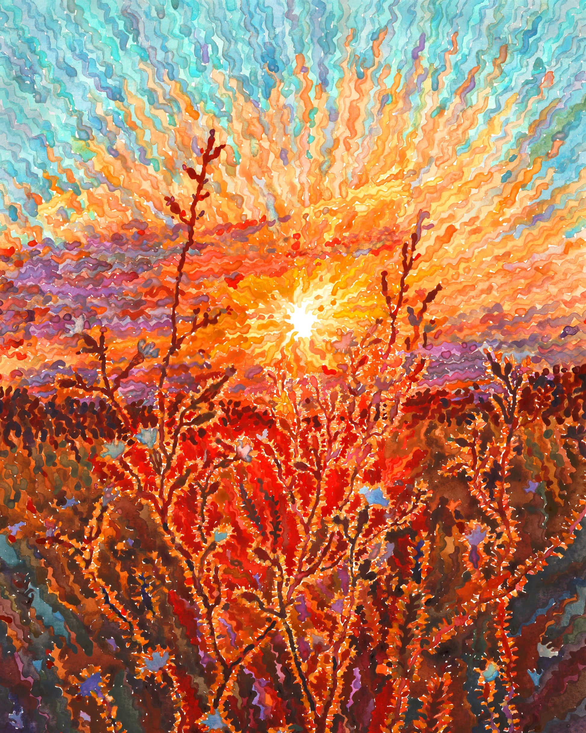 This print, White Campion Flowers on the Sunset by Tanbelia, was first available as a featured print in January 2026. Check out our Art Archive for more about this beautiful piece of art!